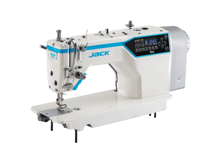 Jack A4B Sewing Machine is a successful model from Jack which comes with very unique features such as automatic dormancy, safety switch, high voltage protection as well as a unique features of automatic thread cutter, automatic reverse and foot lifter (Full UBT).Additionally, A4B comes with an easy-to-use smart panel which allows the user to adjust speed, needle positioning and reset the machine as well as many other features. This sewing machine is idea for various fabrics like yarn and jeans and can handle both light and heavy fabric.