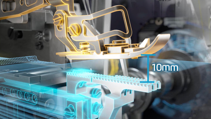 10mm foot lift - The presser foot lift is digital and controlled by a stepper motor. Its lift can reach 10mm (only with C7-4, for other models refer to the specifications table).